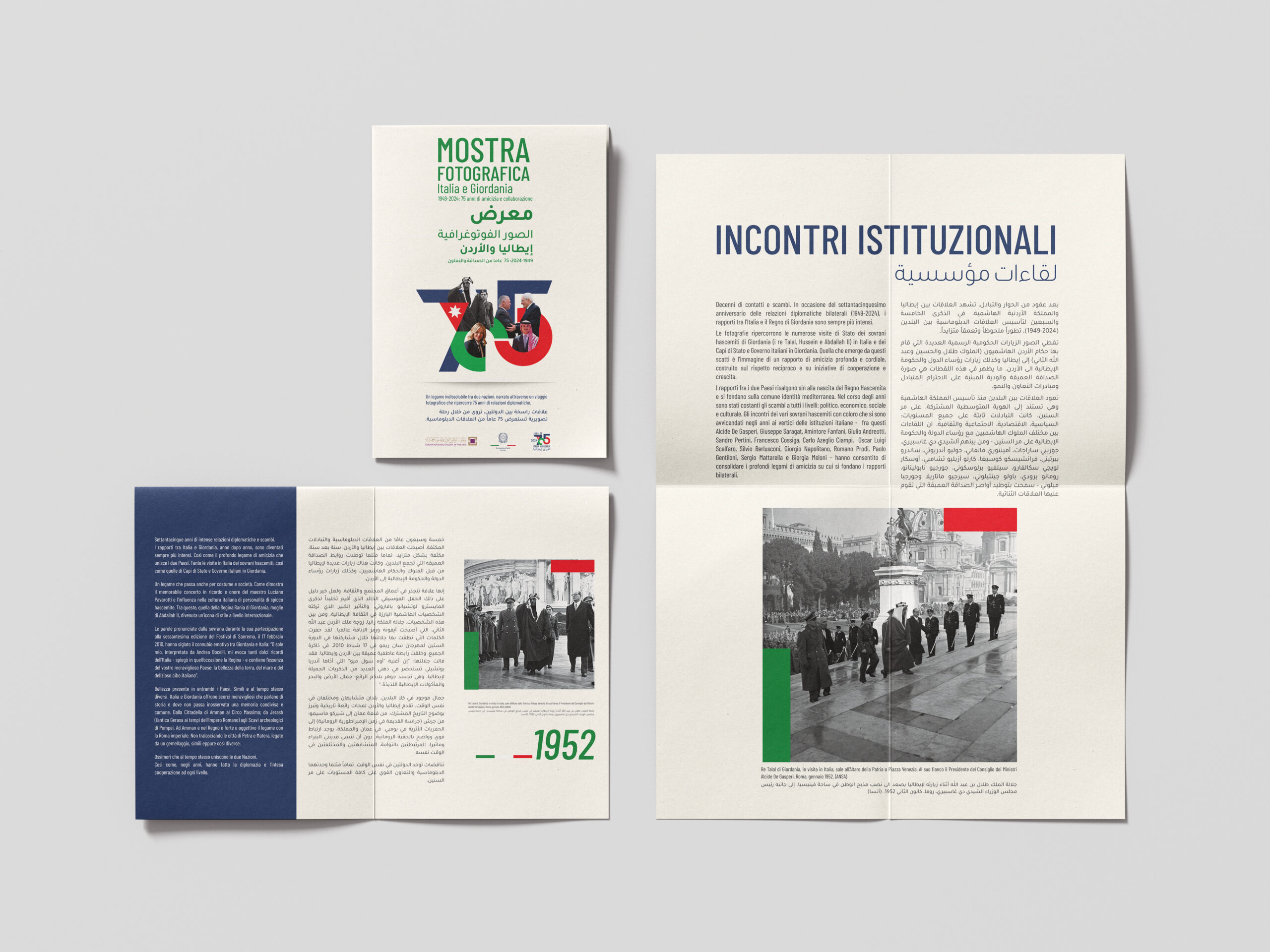 - All photographs come from Italian and Jordanian news agency archives, offering a visual journey through 75 years of friendship, collaboration, and shared history.